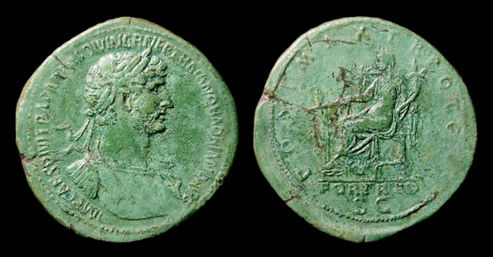 Vs.: IMP CAES DIVI TRA PARTH F DIVI NER NEP TRAIANO HADRIANO AVG