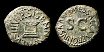 AE Quadrans Münzstätte Rom, von 5 v. Chr. Vs.: SISENNA GALVS III VIR Altar mit Girlande Rs.: MESSALLA APRONIVS AAAFF Großes S C