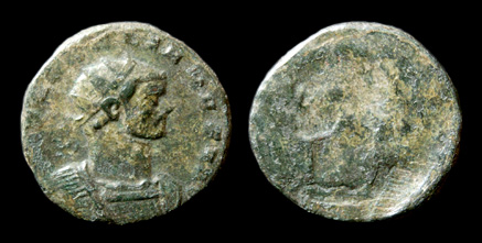 AE Antoninian unbekannte Münzstätte Vs.: IMP AVRELIANVS AVG Büste n. r., gepanzert, mit Strahlenkrone Rs.: incuser Abdruck der Vorderseite