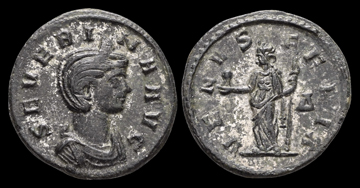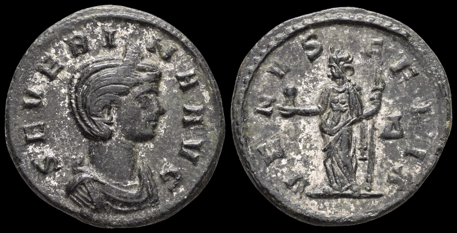 Venus steht n. l., hält sitzende Figur (Cupido?) in der rechten Hand und