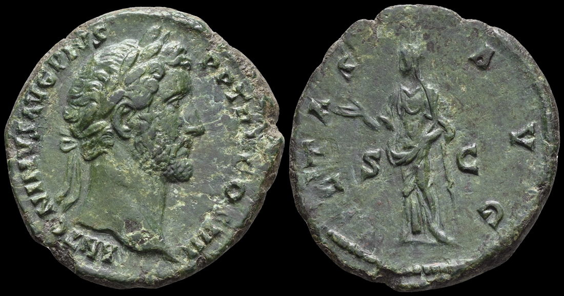 AE As Münzstätte Rom, von 145/161 Vs.: ANTONINVS AVG PIVS P P TR P COS IIII Kopf n. r. mit Lorbeerkranz Rs.: PIETAS AVG S C Pietas steht n. l.