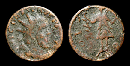 AE Dupondius unbestimmte Münzstätte Vs.: IMP C POSTVMVS P F AVG Büste n. r., drapiert und gepanzert, mit Strahlenkrone Rs.: Pax steht n. l. mit Zweig