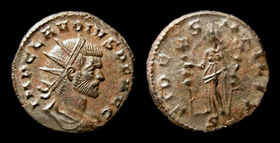 AE Antoninian Münzstätte Mediolanum, 2. Offizine Vs.: IMP CLAVDIVS P F AVG Büste n. r., drapiert und gepanzert, mit Strahlenkrone Rs.: FIDES MILIT / S Fides steht n. l. mit zwei Feldzeichen
