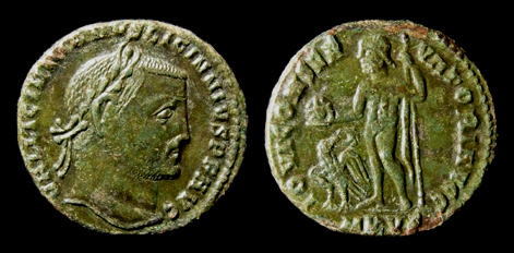 AE Follis Münzstätte Cyzicus, 6. Offizine, von Mitte 311 Vs.: VAL LICINNIANVS LICINNIVS P F AVG Kopf n. r. mit Lorbeerkranz Rs.: IOVI CONSERVATORI AVGG / MKVS Jupiter steht n. l. mit Globus und Zepter, zu seinen Füßen Adler mit Kranz im Schnabel