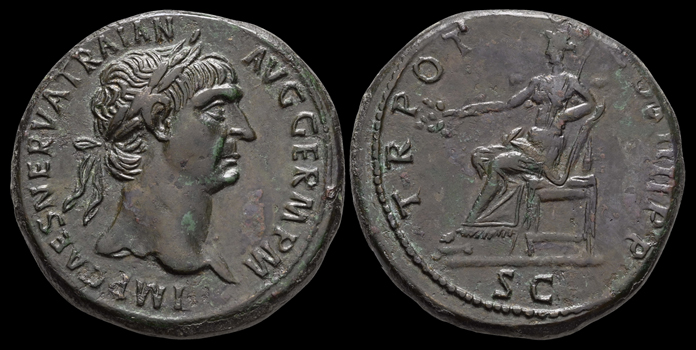 Vs.: IMP CAES NERVA TRAIAN AVG GERM P M